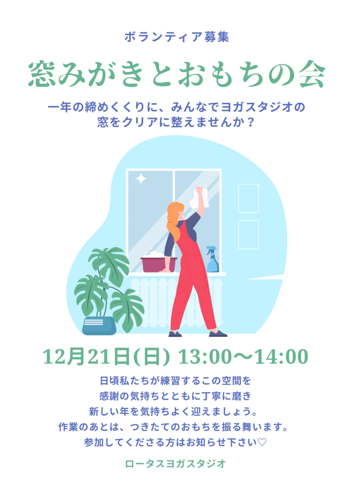 スタジオの窓拭きを手伝って下さる方を募集します!