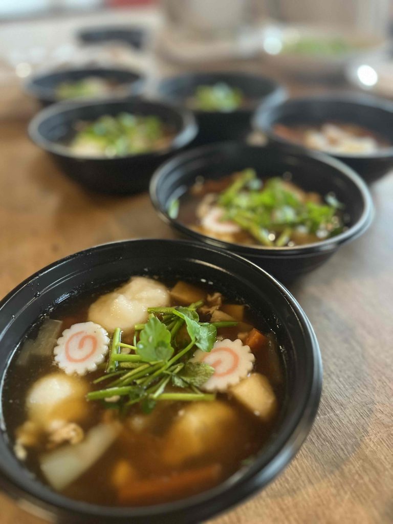 作業のあとは、一足早い「つきたてお餅のお雑煮」を囲んでほっこり☺️