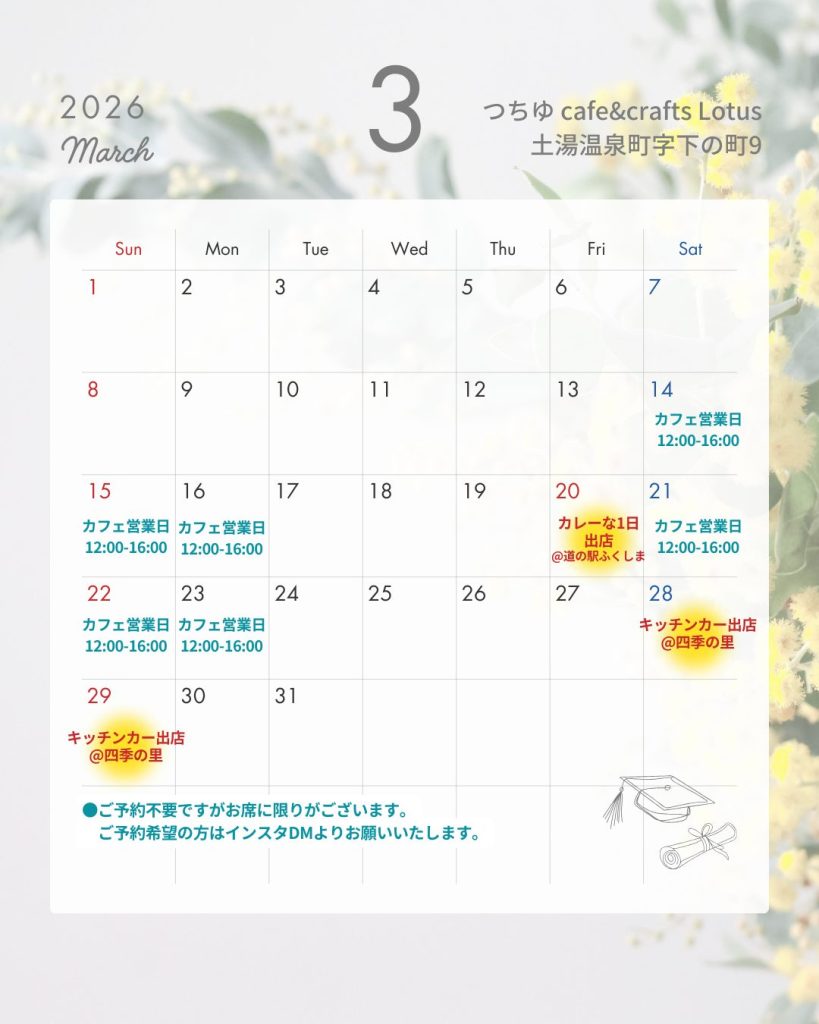 ☕土湯カフェのスケジュール☕